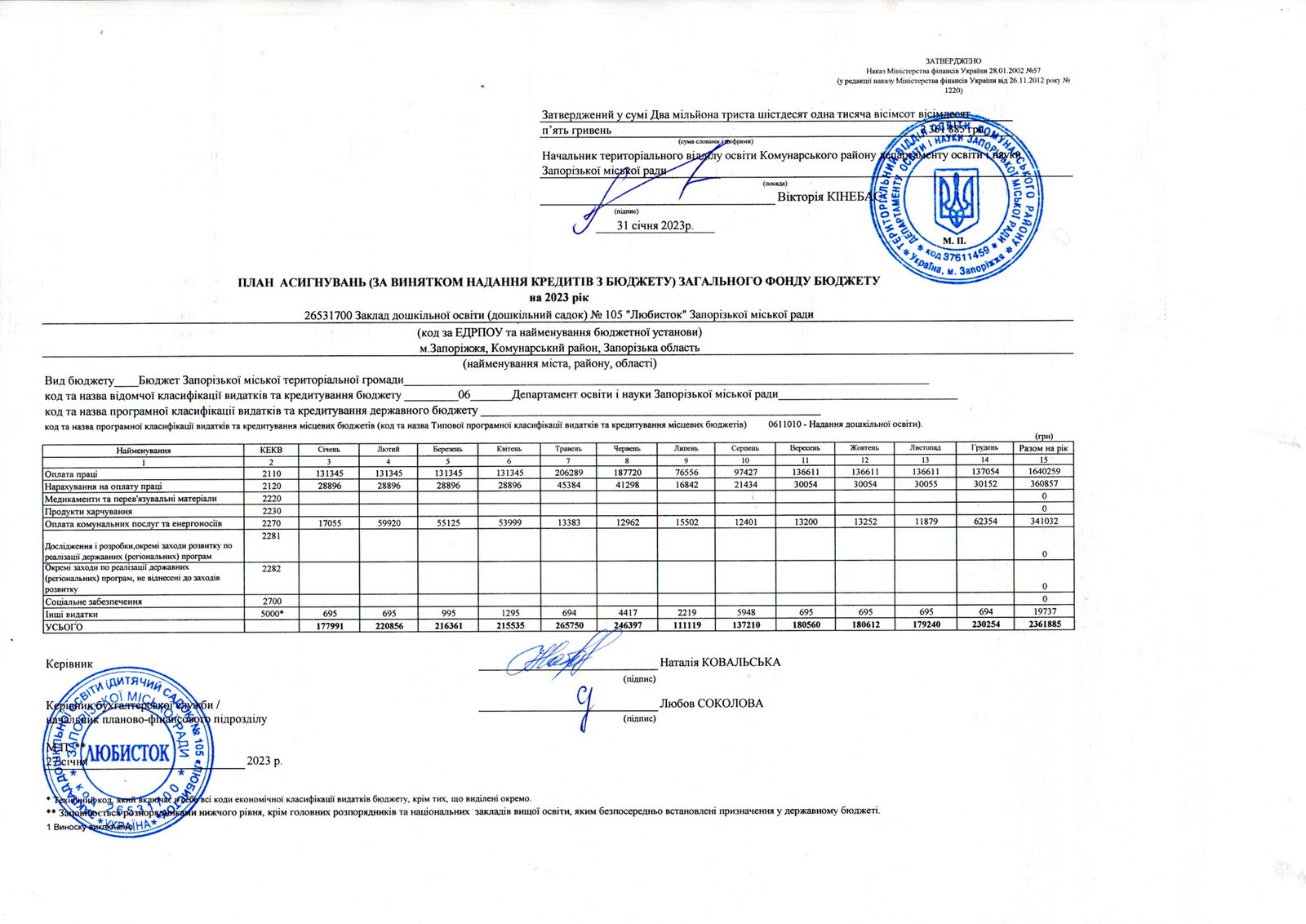 « КОШТОРИСИ та звіти фінансові