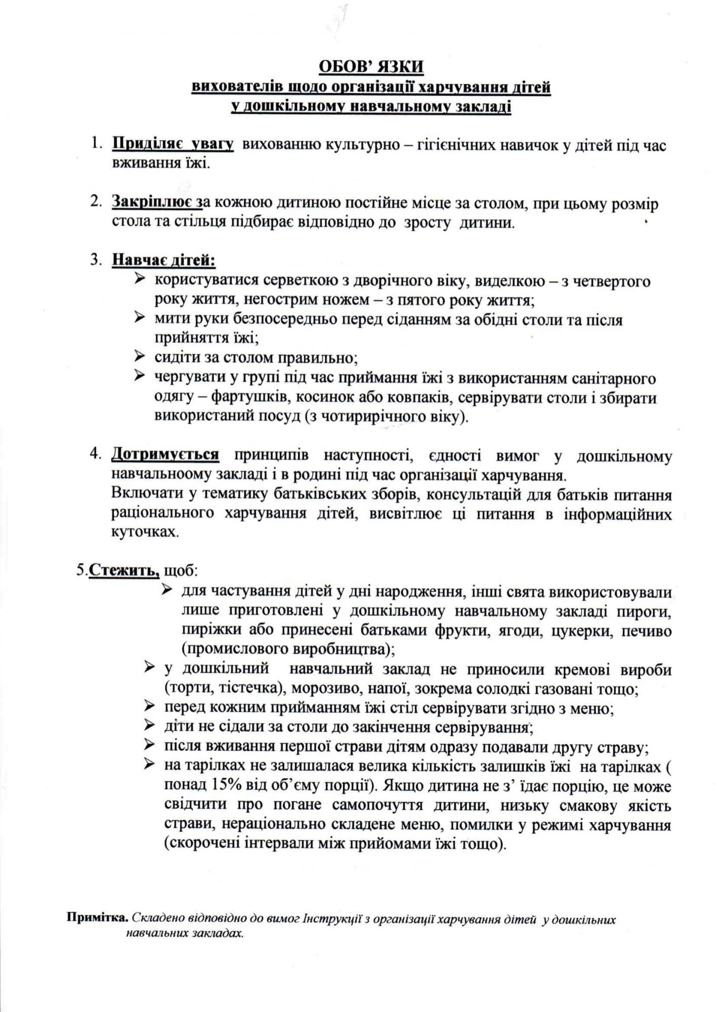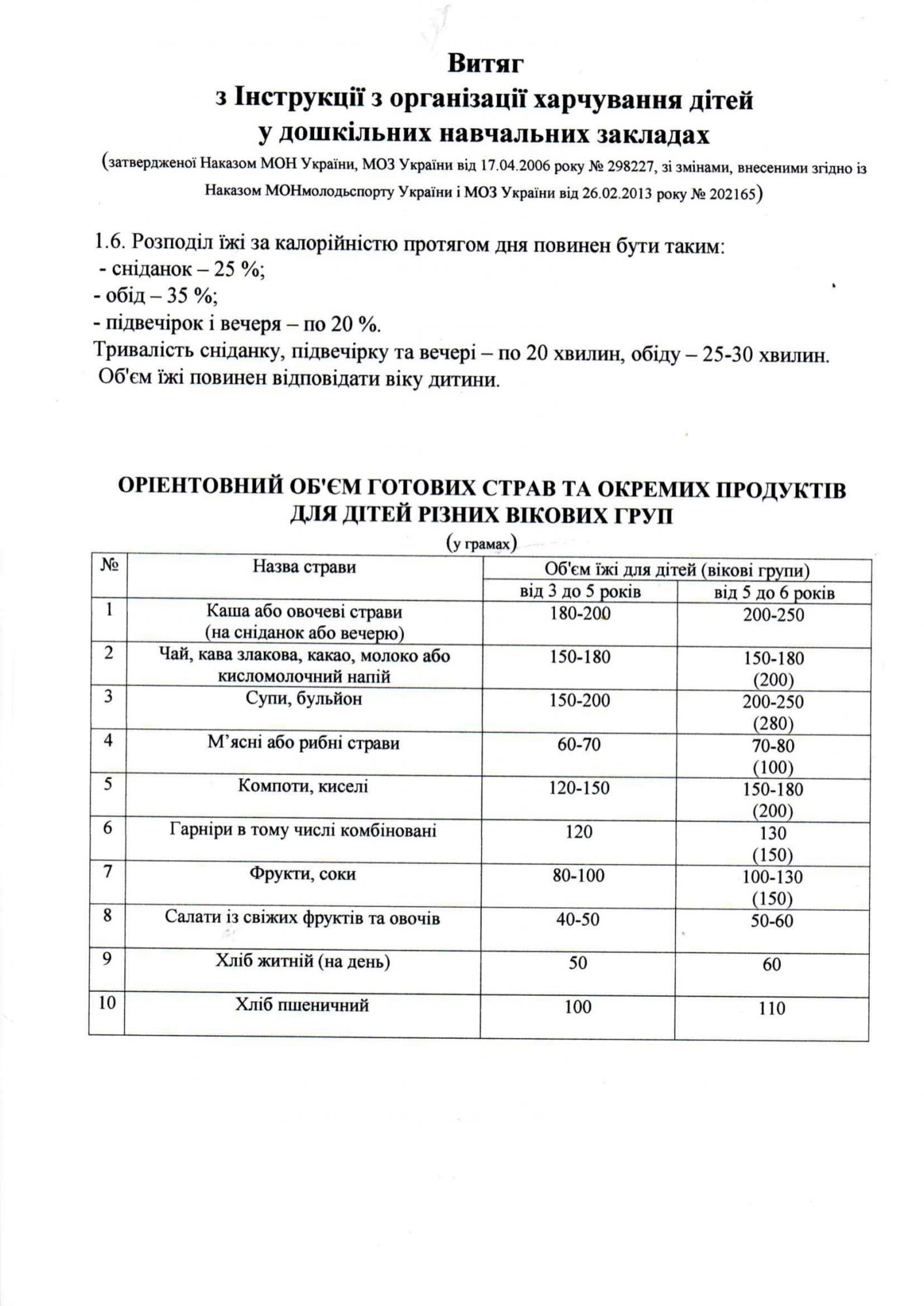Аналізуємо норми й Порядок організації харчування в закладах дошкільної освіти