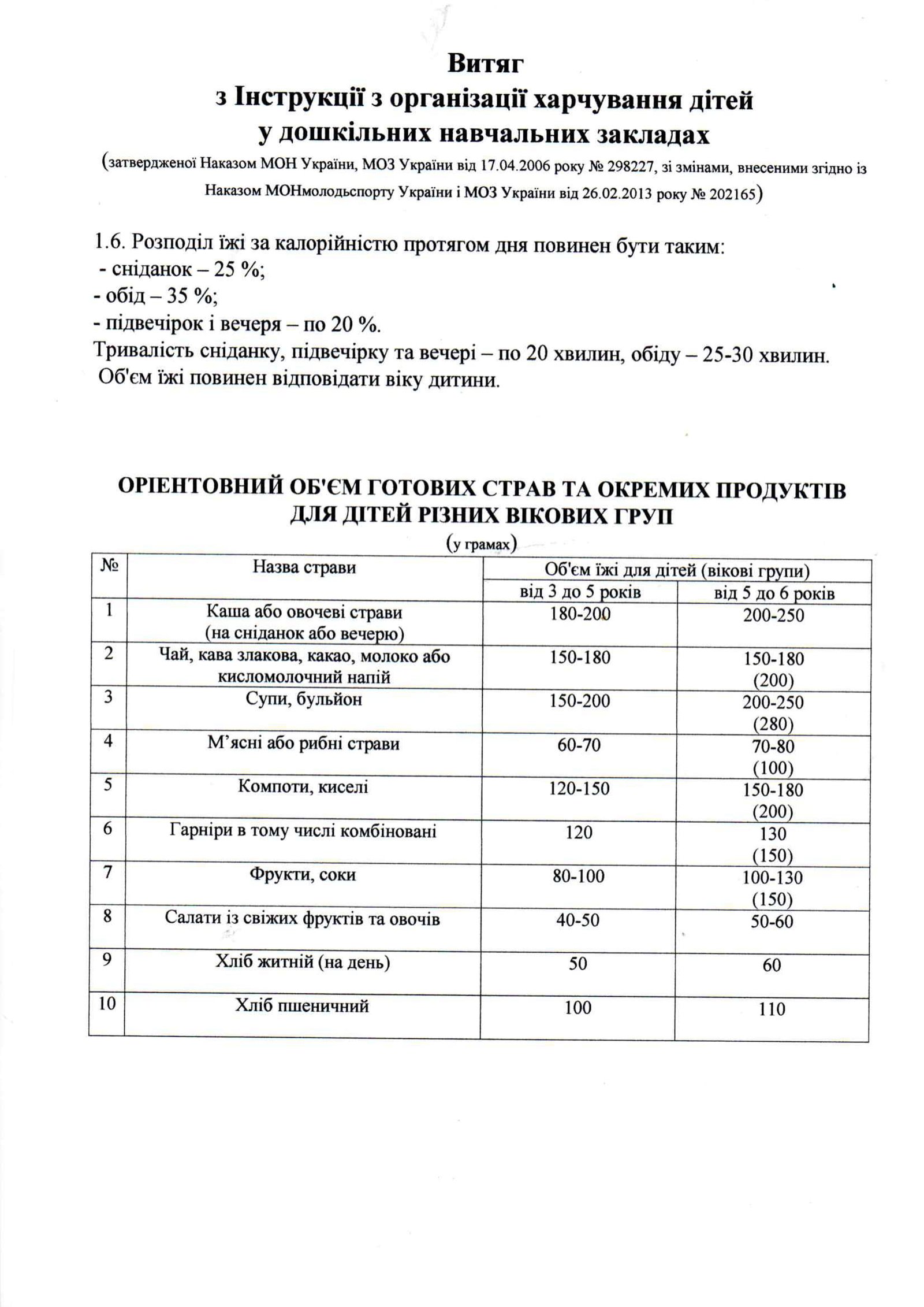 Харчування дітей в ЗДО