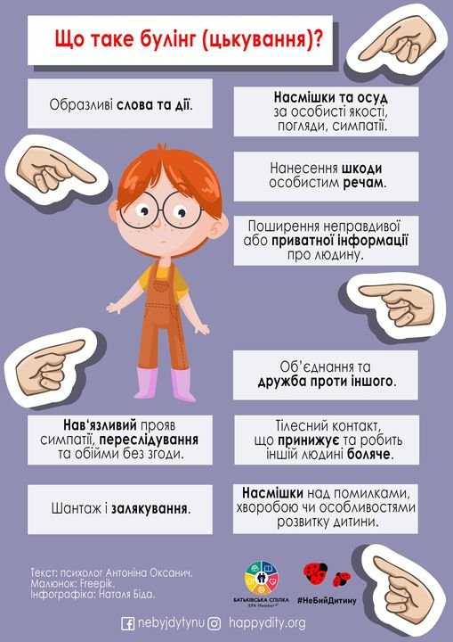 • Надаються соціальні та психолого-педагогічні послуги здобувачам освіти, які вчинили булінг, стали його свідками або постраждали від булінгу.